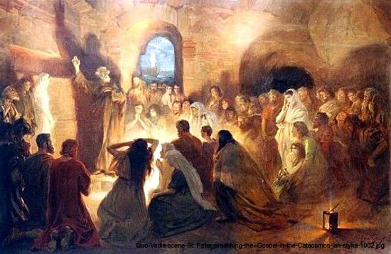 Апостол Петр, проповедующий Евангелие в катакомбах.