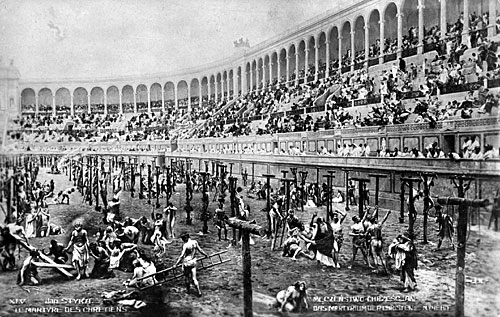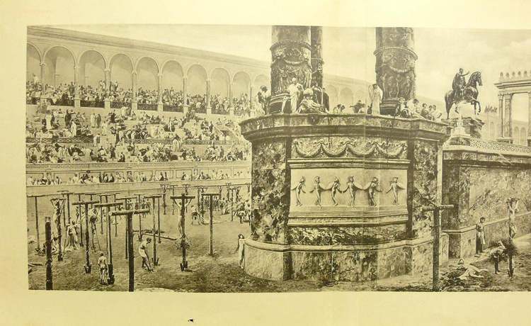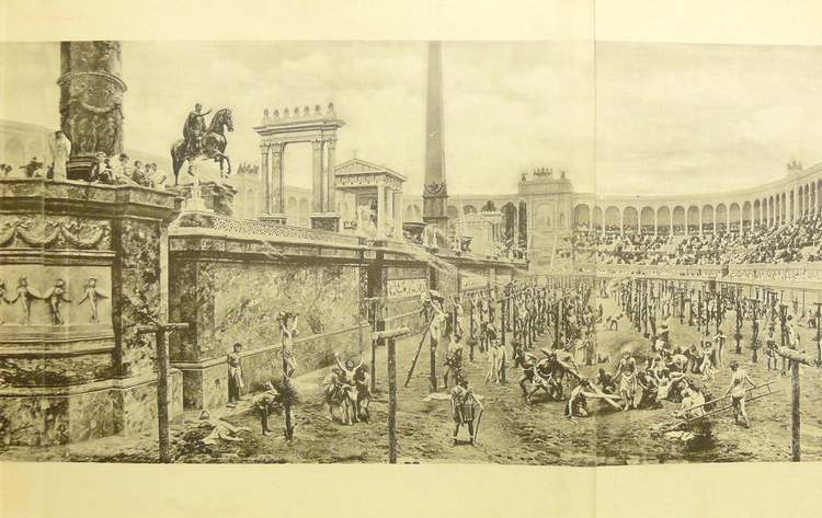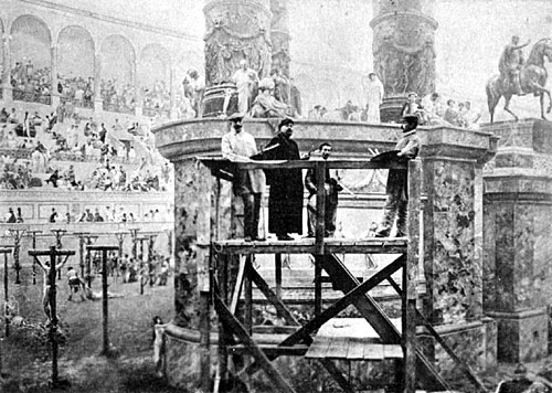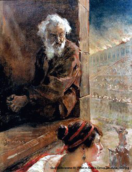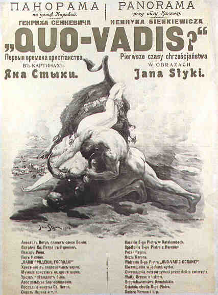 Поляк Ян Стыка (1858-1925), художник, поэт и иллюстратор, родился во Львове, который в то время находился на территории Австро-Венгерской империи. Живописи обучался в венской Академии изобразительного искусства, которая считалась лучшей в Европе. Академию он закончил с золотой медалью и поехал оттачивать свое мастерство в Италию, откуда позднее перебрался во Францию. Он создал 4 панорамы, две из них на религиозные темы — «Голгофа» (1896) и «Мучения христиан в цирке Нерона» (1899). Кроме того, он написал серию из 15 картин к роману Сенкевича «Камо грядеши» (1901-02). Все эти произведения выставлялись в России.