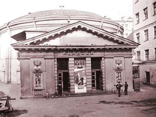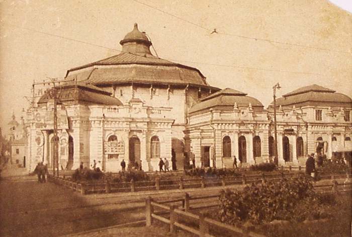 Харьков. Торговые ряды и павильон, построенный для «Голгофы», по проекту арх. А. Н. Бекетова в 1908 году. В 1915 году переоборудован под кинематограф «Маяк».