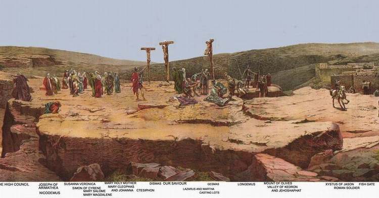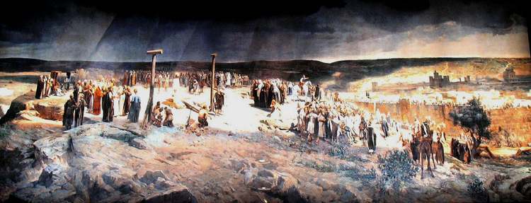 Обычно считалось, что самыми прибыльными сюжетами панорам являлись великие военные сражения, виды больших красивых или исторически важных городов. Религиозные сюжеты не пользовались массовым вниманием публики, пока это мнение не взялись опровергнуть немецкие художники, создавшие величайшую панораму окрестностей Иерусалима и Распятия Христа, впервые показанную в Мюнхене в 1886 году. Подробнее остановиться на истории и описании этого начинания интересно потому, что копии именно этой панорамы выставлялись позднее в России.
