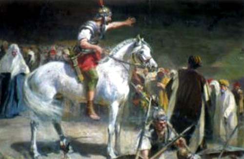 Далее описываются римские солдаты, равнодушно взирающие на казнь иноземные купцы, прибывшие с караваном, разношерстная толпа жителей Иерусалима…