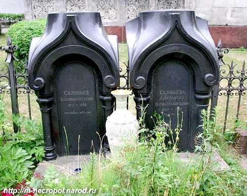 Позже, после командировки, я посетил Новодевичий монастырь и разыскал могилу знаменитого философа Владимира Соловьева. Похоронен он рядом с могилой его отца С. М. Соловьева. Вечный им покой.