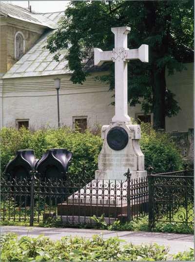Белый крест установлен над могилой историка С. М. Соловьева,