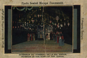 Об одном лишь приходится пожалеть, что паломники, кто бы они ни были, лишены возможности видеть подлинный Гроб Богоматери: он <…> прикрыт мраморными плитами и решительно недоступен обозревателю. Причиной ставят то же, что у Голгофы и Гроба Господня; не в меру усердные паломники отламывают себе на память от каменного ложа частицы, отчего святой памятник может совершенно утратиться»[14].