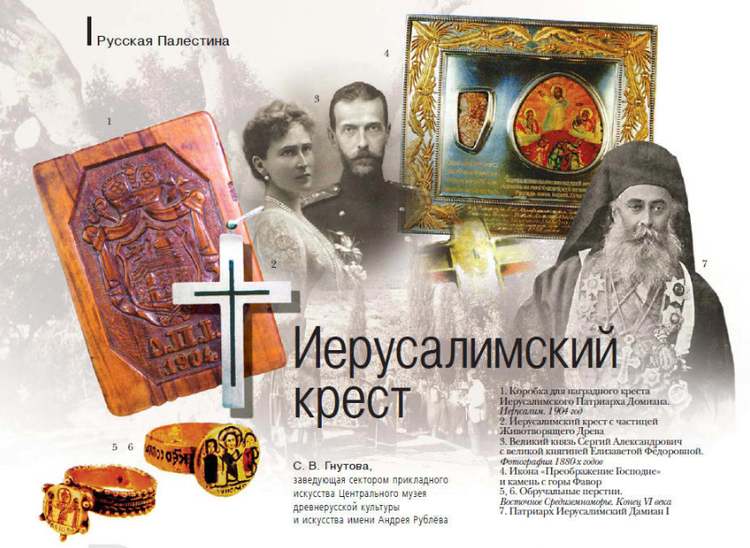 В 2004 году в музей имени Андрея Рублёва был представлен на экспертизу крест, находящийся в деревянном футляре, видимо, исполненном иерусалимским мастером. Об этом свидетельствуют технические приёмы резьбы православных резчиков-арабов. На крышке в восьмиугольной рамке размещено резное изображение герба Иерусалимского Патриарха, под ним – буквы «Д. П. I.», означающие «Дамиан Патриарх Иерусалимский», и дата: «1904» – в этом году шли активные переговоры между Русской духовной миссией и Иерусалимским Патриархатом о закупке земель в Палестине. В апреле 1904 года правительство России отпустило ссуду 400 тысяч рублей, за что Патриарх Дамиан особенно благодарил русского консула А. Г. Яковлева.
