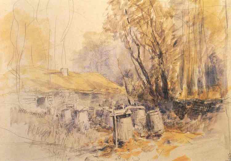 Этюд, использованный художником при написании картины «Разлив на Суре»