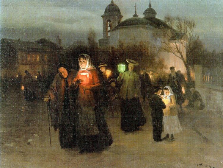 Вариант картины "Выход из церкви на Страстной четверг" (1904 г.)