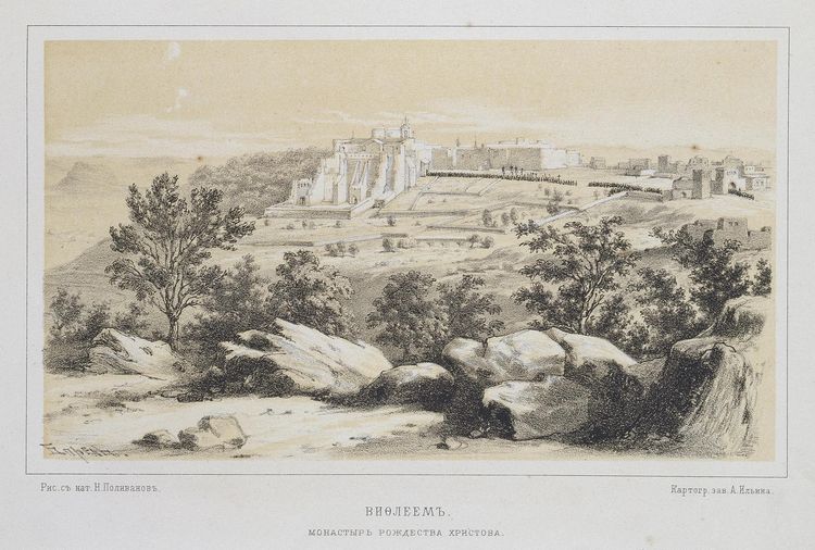 Николай Петрович Поливанов (1832-1909) совершил путешествие в Святую Землю в 1861 году вместе со своим дядей А.С. Норовым, который ездил туда уже во второй раз. Рисунки Н. Поливанова, сделанные во время поездки были изданы в отдельном альбоме "Палестина и Синай: альбом видов рисованных с натуры Н.П. Поливановым" (Санкт-Петербург: Изд. Н.П. Поливанова, А.А. Ильина и Ко. 1878 г.). В 1903 году он издал брошюру в 33 листа «Очерк истории Палестины».