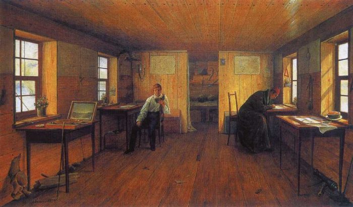 лодке-мастерской братья привезли множество этюдов, зарисовок и панораму