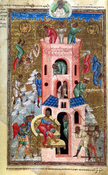 Первое упоминание о Древнем Вавилоне мы находим уже в начальных главах первой книги Библии — Бытие. Там содержится всем известный рассказ о возведении Вавилонской башни. Это случилось вскоре после всемирного потопа, когда внук Хама Нимрод (Нимврод) и другие потомки Ноя решили построить надежное укрытие на случай нового потопа. Тогда люди были единым народом и говорили на одном языке. Постепенно башню захотели вознести до небес и затмить Бога. В результате Господь разрушил башню, смешал языки и рассеял народы.