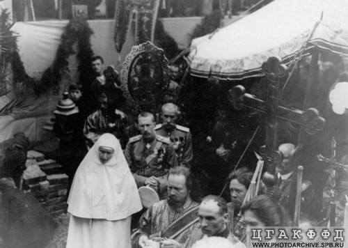 Великая Княгиня Елисавета Феодоровна в составе крестного хода направляется к месту закладки храма.