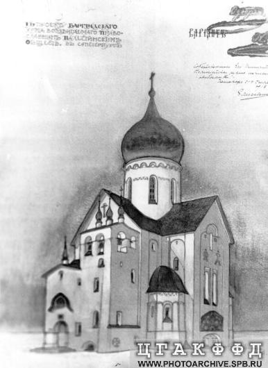 В начале августа месяца с. г., по получении разрешения от С.-Петербургского епархиального начальства, было приступлено к разборке прежнего храма и подготовительным работам к закладке нового под ближайшим наблюдением попечительства сего храма во главе с председателем генерал-майором Н. П. Цытовичем. Место, предназначенное для храма, было обнесено высоким деревянным забором с входными вратами в древне-русском стиле с тремя небольшими главками; над местом предполагаемого алтаря, на деревянном помосте, была разбита обширных размеров походная палатка, сплошь устланная темно красным сукном и декорированная тропическими растениями; наружные и внутренние стены временной ограды, особенно входные врата, были украшены гирляндами из зелени, а от врат до часовни, чрез всю улицу, положен широкий красный ковер.