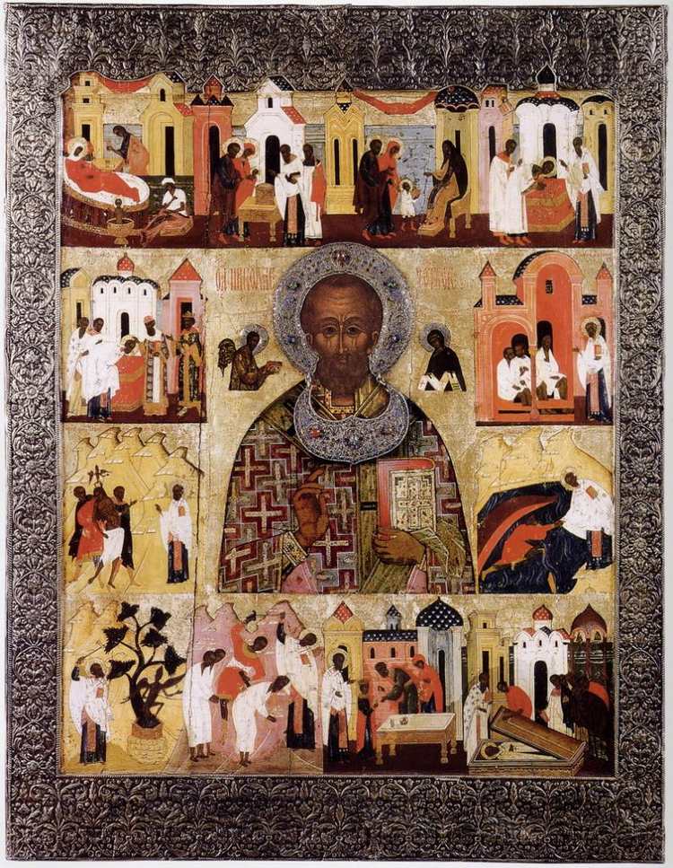 Рядом со Спасом – икона св. Николая, архиепископа Мирликийского, с чудесами, превосходного письма XVI века.