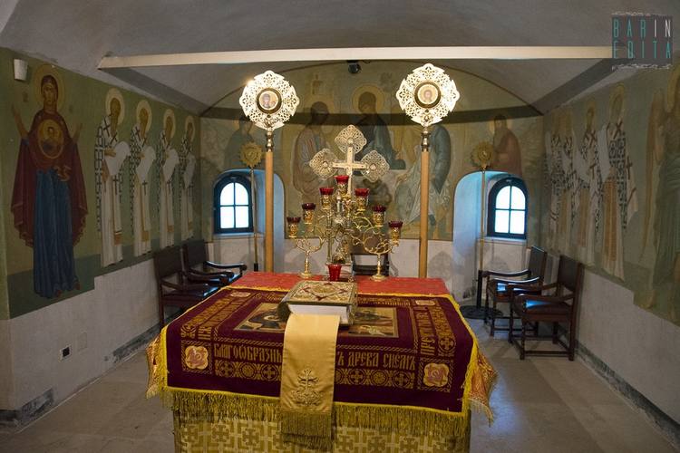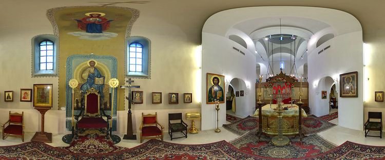 Бенуа, урожденной Новинской.  В высокой конхе апсиды теми же художниками Бенуа написан образ Знамения Божией Матери, ниже — Спас на Престоле.  Панорамное фото http://www.mesysmedia.it/portfolio/chiesa-russa-di-bari/