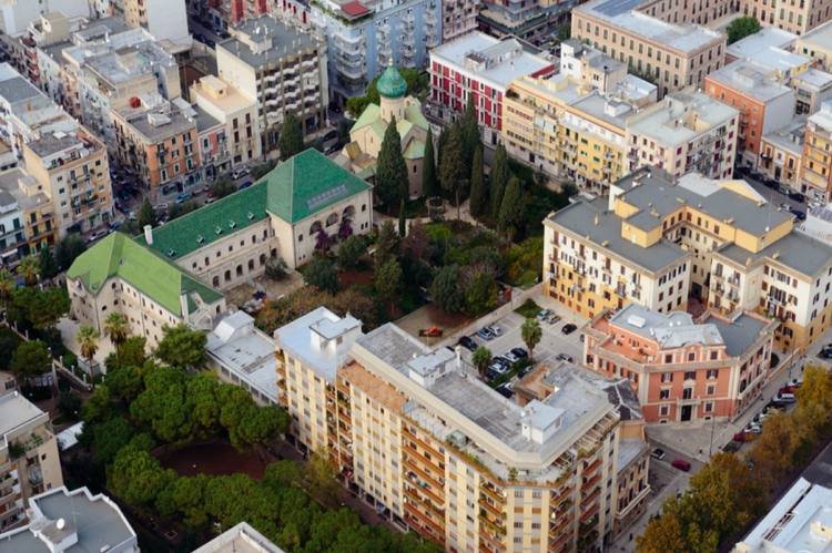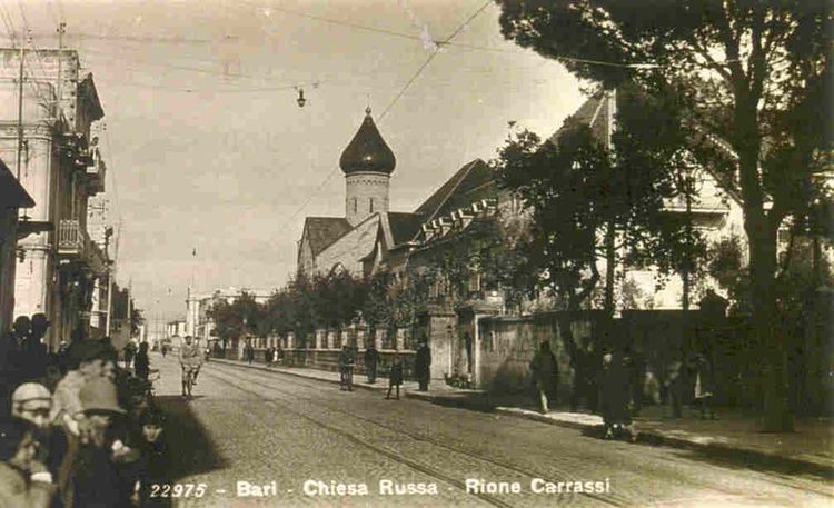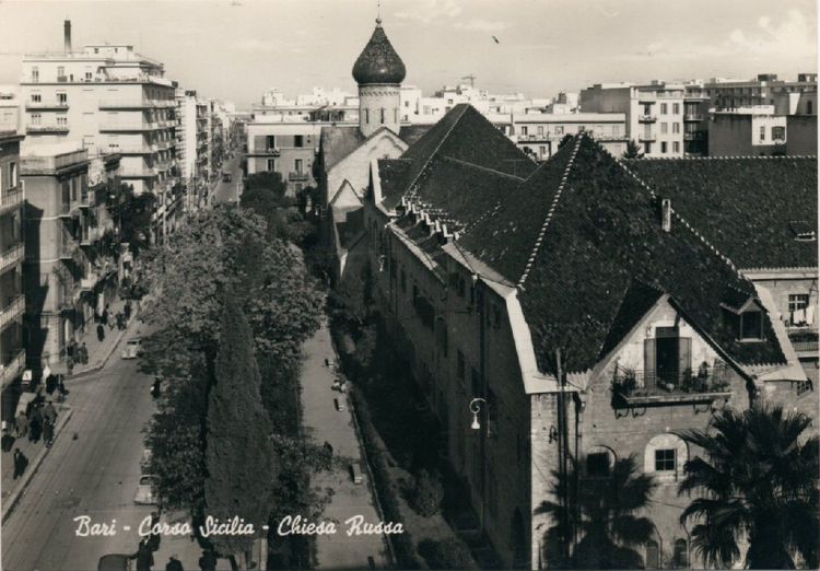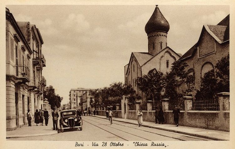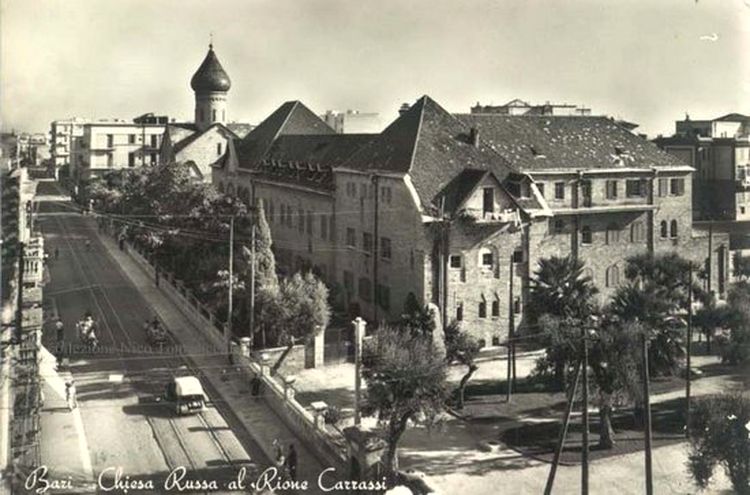 Паломнический приют с храмом во имя свт. Николая в Бари по проекту А.В. Щусева был построен Императорским Православным Палестинским Обществом в 1913-16 гг. Он фактически не успел послужить русским паломникам из-за начавшейся Первой мировой войны, а затем Октябрьской революции. В военные годы там находили приют русские туристы, ждавшие отправки домой морем, затем располагался итальянский Красный Крест