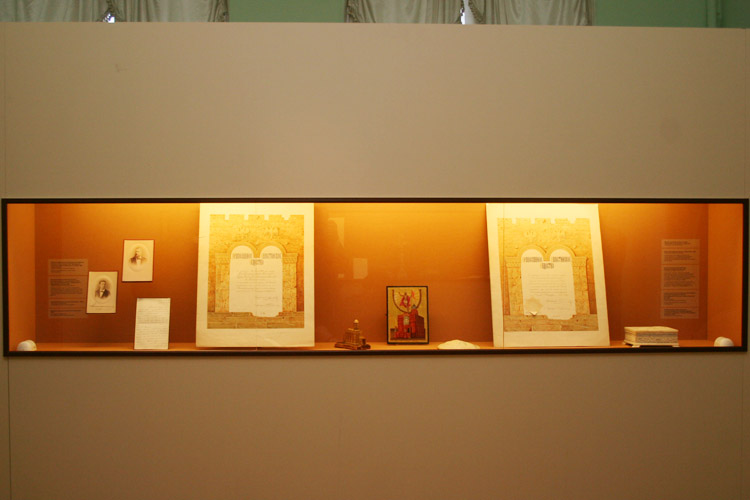Всего на выставке представлено около 120 документов и 50 экспонатов из архивов и музеев.