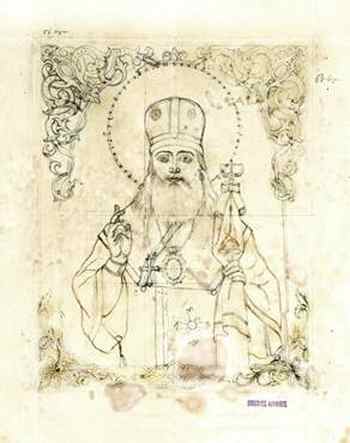 Прорись иконы свт. Тихона Задонского, выполненная Феофаном Затворником.