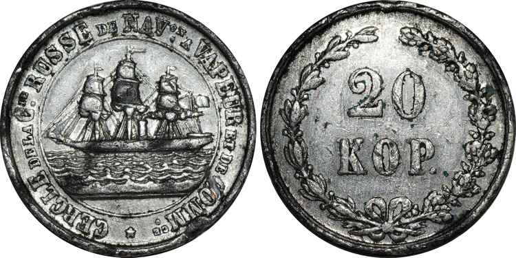 Платежный жетон Русского общества пароходства и торговли. 20 копеек.