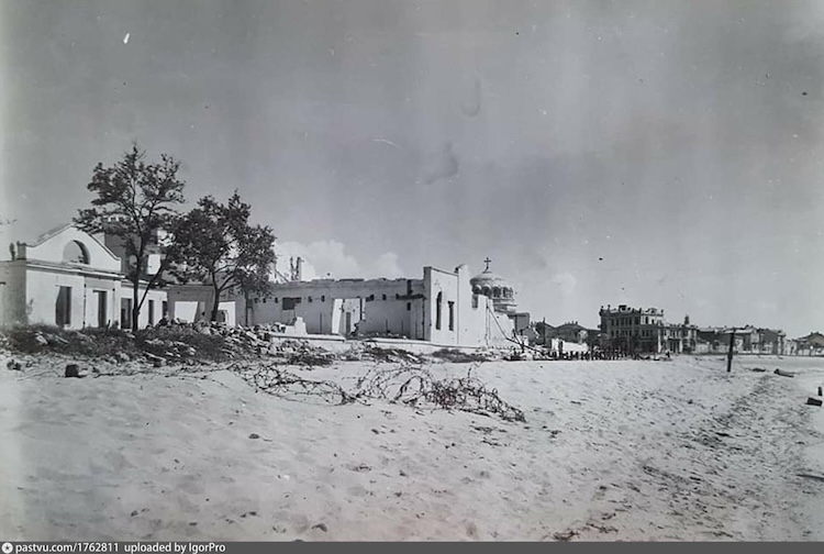 Разрушенные во время румыно-немецкой оккупации здание старого порта и пассажирской пристани бывшего РОПиТ (Русское общество пароходства и торговли). 1944 г.
