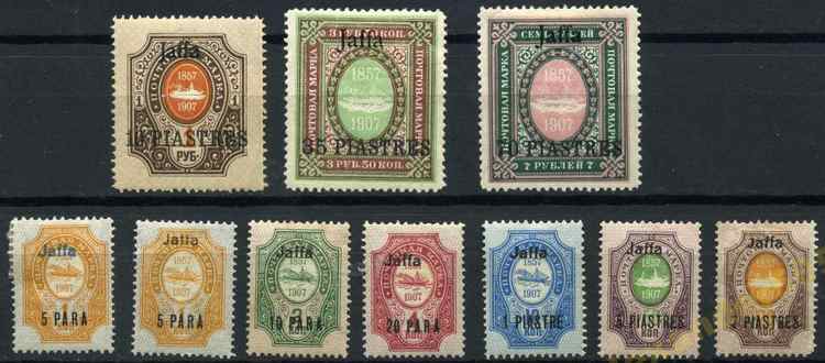 Марки РОПиТ 1907 г. к 50-летнему юбилею Общества для Яффы