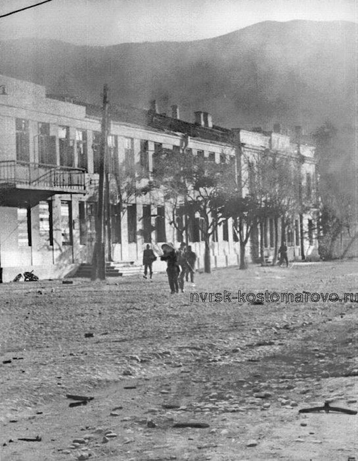 Новороссийск. Здание инфлота, пристроенное к зданию РОПиТ (справа). 1942 год.
