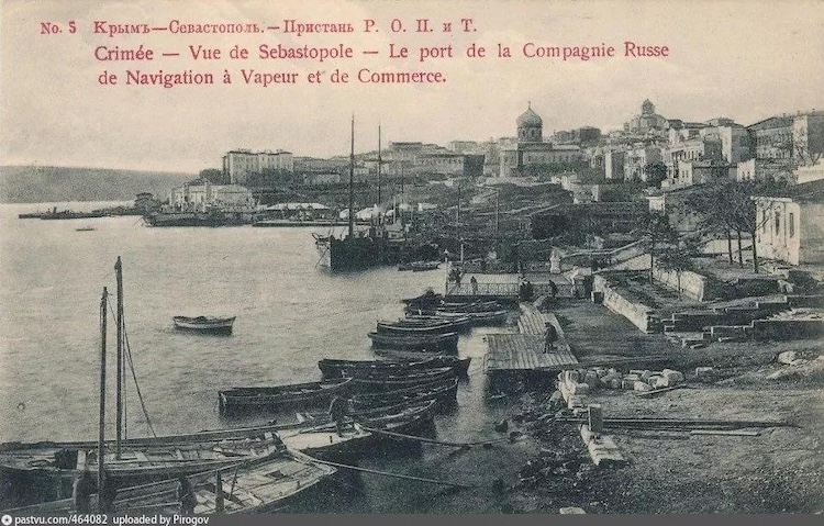 Пароходная пристань Русского общества пароходства и торговли (РОПиТ) в Севастополе. Она была построена на сваях в 1859 году.