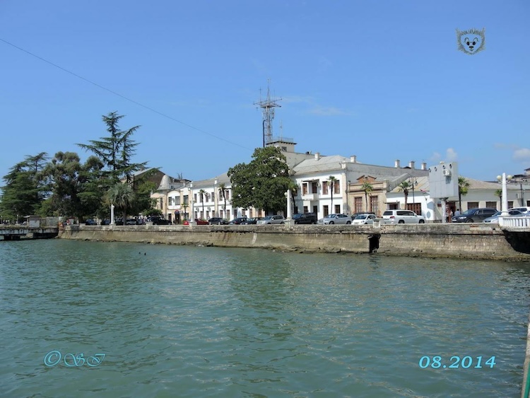 Сухум. Вид с моря. Справа здание РОПиТ белого цвета. Напротив пристань РОПиТ.