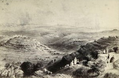 Через ? часа пути дорога выходит из садов яффских и вьется по ровному месту, между полей, нив и деревушек. Идя по этой дороге, мы увидим много любопытного. Старинные полуразрушенные колодцы ютятся в зелени, а возле них толпы женщин в тех же одеждах, с такими же кувшинами, какие были во время Рахили и Лавана; огромные арабы ждут на крошечных осликах; стада овец ожидают своей очереди напиться у колодца; пастухи наигрывают на свирели; женщины идут с фруктами на рынок в Яффу; арабы на верблюдах, на лошадях, на ослах. А вдали синеют Иудейские горы, на которые смотрел еще Авраам и Ной» [4].
