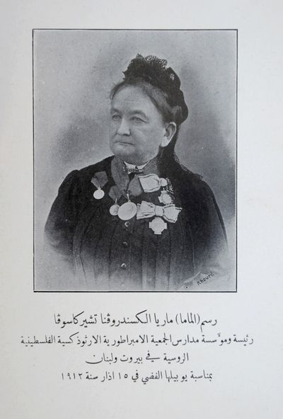 Все эти школы, за исключением Рас-Бейрутской Богородичной, помещались всегда в наемных на средства Общества домах, а поэтому были мало приспособлены для своих целей и, кроме того, нередко приходилось их обитателям испытывать не мало огорчении со стороны их владельцев, старавшихся как можно больше извлечь выгод из домов, отданных под школу, и как можно меньше, в свою очередь, затрачивать на их ремонт и приличное содержание. В силу этого Мария Александровна в приходе церкви св. пророка Илии (мар-Ильяс), в местности загородной и уединенной, приобрела в собственность обширный участок земли, развела прекрасный сад, выстроила большой двухэтажный дом, внизу для классных занятий школы, а вверху для приема гостей и для жилых помещений себе и своим постоянным сожительницам - Афифе и Асме Абдо. Школа эта своим благоустройством производит на посетителей весьма благоприятное впечатление. Несколько позже на дворе своего дома Марии Александровна воздвигла небольшую, но весьма благолепную церковь для ежедневного в ней совершения богослужения, которого она, впрочем, добилась не без труда, после 8 месяцев, будучи в пререканиях из-за этой церкви с ныне правящим бейрутским митрополитом Герасимом.