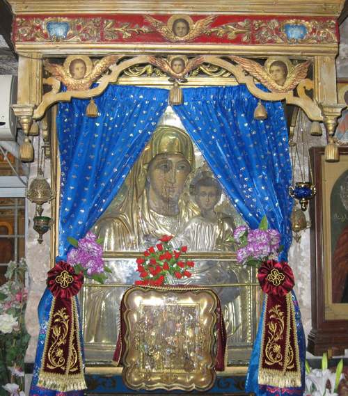 Икона Божией Матери, перед которой совершилось чудо покаяния, нового крещения слезами, Марии Египетской, долгое время после этого находилась на прежнем месте, в притворе храма Гроба Господня. „Эту икону мы видели во святом городе Христа Бога нашего и часто лобызали ее“,— говорит Иоанн Дамаскин в слове, читанном на VII Вселенском соборе (787 год), то есть приводит житие Марии как одно из доказательств чудотворности святых икон и необходимости их почитания. Позже, как думают, при Патриархе Мефодии (842–846 гг.), икона была перенесена в Константинополь и находилась в Софийском соборе. Русский паломник иеродиакон Зосима в 1420 году, незадолго до гибели Царьграда и разграблении Софии турками, „видел образ Пречистой, что из Иерусалима, от которого был голос к Марии Египетской“. Впрочем, может быть, это был один из чтимых списков. Другой показывают в Иерусалиме и сейчас — в церкви святого Иакова, слева от входа в храм Гроба Господня.