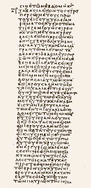 Септуагинта. Колонка унциального текста из Ватиканского кодекса. Середина IV в.