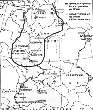 Св. равноапостольная Ольга была супругой киевского князя Игоря и матерью его преемника на киевском столе — князя Святослава. Святославу было всего лишь четыре—пять лет от роду, когда он осиротел: в 946 г. или чуть позже, во время полюдья (осенне-зимнего сбора дани с подвластных Киеву славянских племен) в земле древлян, лесном краю за рекой Тетеревом, был убит Игорь. Казалось бы, перед лицом древлянского восстания, за которым последовало отпадение от Киева и некоторых других племен, Древнерусское государство и его малолетнего князя ждут тяжелые времена. Бразды правления пришлось взять в руки молодой княгине. Женщина на княжем столе! Положение выглядело настолько шатким, что древлянскому князю Малу пришла в голову дерзкая мысль самому овладеть Киевом, женившись на вдове Игоря. И тут впервые по-настоящему проявился характер Ольги. Все двадцать древлянских послов, прибывших в стольный город Руси со сватовством от своего князя, были преданы жестокой казни, а во время последовавшего затем похода на древлян, который возглавила сама княгиня, их главный город Искоростень был сожжен, племенная знать истреблена, а вся территория древлян обложена регулярной данью. Будучи человеком государственного ума — «мудрейшей всех человек», как отозвался о ней позднейший летописец — княгиня Ольга не ограничилась древлянской землей, а произвела реформу взимания дани, т. е. государственного налога того времени, и в прочих землях, входивших в состав Руси, покрыв ее сетью погостов — административных пунктов, куда в урочное время свозились дани. Деятельная натура Ольги выразилась и в том, что проводя свои преобразования, она лично объездила чуть ли не всю Русь, от Новгорода до Черниговщины, а псковичи, земляки княгини, еще по крайней мере в начале XII в. с гордостью сохраняли как святыню сани, в которых полтора столетия назад Ольга совершала свои разъезды.В таких трудах прошли десять лет правления Ольги, в течение которых Русь не только не ослабела, но заметно окрепла. Подрастал Святослав, близилось время, когда княгиня должна была передать власть возмужавшему сыну и его воеводам, а самое главное еще не сделано. Природная прозорливость, государственный инстинкт и еще что-то, вещавшее ей из самой глубины ее сердца, подсказывали киевской правительнице, что корень величия Византийской державы, Ромейского царства, приковывавшего к себе взоры всего мира, не только в войске, не только в несметном богатстве, не только в седой римской старине, а прежде всего в святой Церкви, которая одна и делала византийского императора царем всех христиан. А потому и Руси не быть никогда великой, крепкой и святой, если не войдет она в лоно Христовой Церкви. Понимала Ольга и другое: что огромное дело крещения державы нельзя начать иначе, как с ее, княгини, личного примера, с ее собственного крещения. Уже при Игоре в Киеве, в том числе и среди дружины мужа, она это прекрасно знала, было немало христиан; была в Киеве, вне города, на Подоле, и церковь — во имя святого пророка Божия Илии. Хочешь креститься, крестись: сам Игорь крещен не был, но другим креститься не мешал и насмешек над христианами не любил. Но что-то мешало Ольге пойти этим самым простым путем. То не были расчетливые опасения политика перед возможным народным недовольством, еще меньше пугали властную княгиню боярские пер