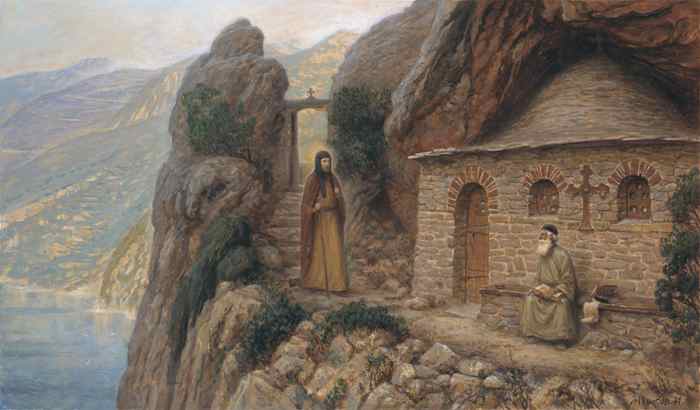 После десятилетнего пребывания прп. Антония на Афоне в пещере близ Эсфигмена (?) [2] он благословляется в обратный путь в Русскую землю. По поздней Густынской летописи, ок. 1028/30 г., а по Житию прп. Феодосия Печерского, после 1051 г. прп. Антоний возвращается на Русь, где вскоре основывает Киево-Печерский монастырь – первую обитель такого типа на Руси, ставшую затем Лаврой в честь Успения Божией Матери.