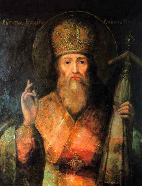 Патриарх Константинопольский Нил благословляет св. архиепископа Дионисия вернуться на Русь.