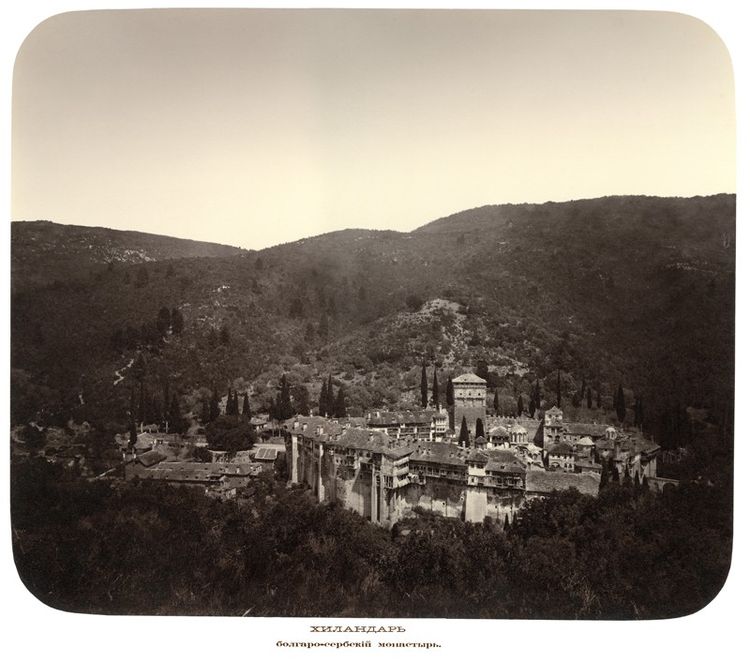 Что же касается Хиландара, то князь А.П. Лопухин писал в 1901 году: "... Хиландар населён главным образом болгарскими и отчасти сербскими монахами: он имеет до 26 келлий, часть коих принадлежит русским; монастырь находится в цветущем состоянии" [6] – благодаря усилиям Сербского Короля Александра Обреновича.