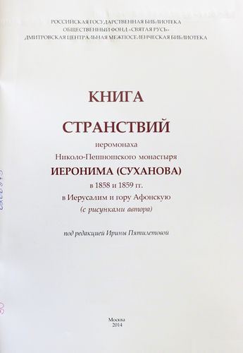 Книга Странствий иеромонаха Николо-Пешношского монастыря Иеронима (Суханова) в 1858-1859 гг. в Иерусалим и гору Афонскую