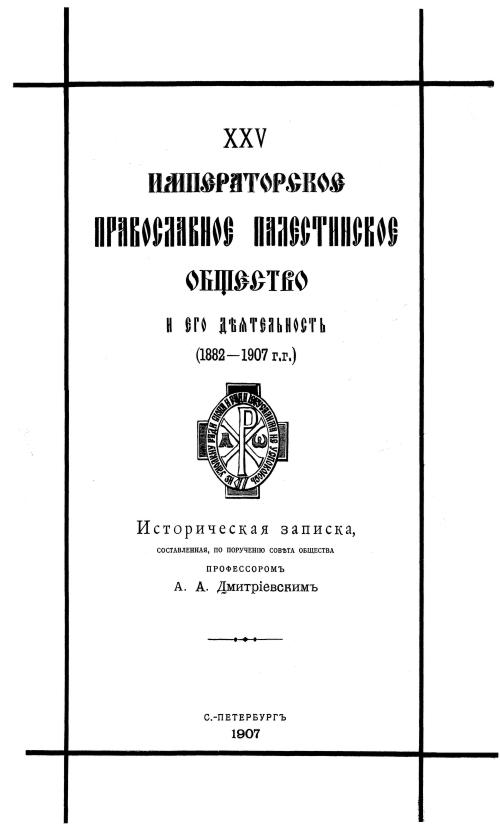 Императорское Православное Палестинское Общество и его деятельность за истекшую четверть века 1882-1907