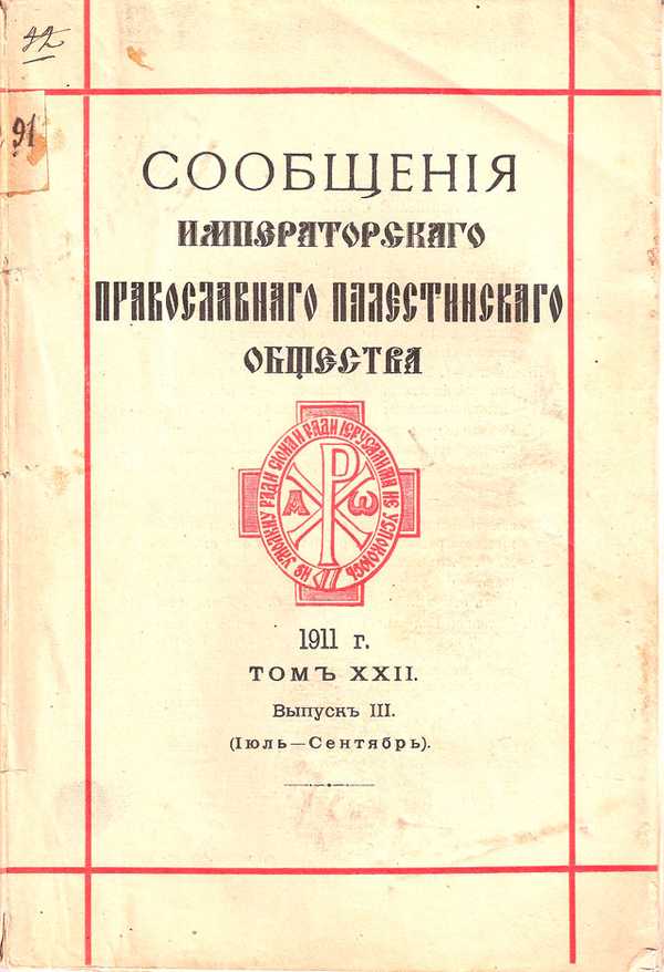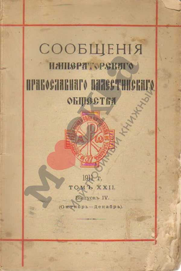 Сообщения Императорского Православного Палестинского общества. Т. 22. Вып. 4 (октябрь-декабрь). 1911. Спб.: типография Киршбаума