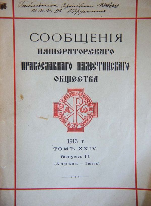 Сообщения Императорского Православного Палестинского общества. Т. 24. Вып. 2 (апрель-июнь). 1913. Спб.: типография Киршбаума