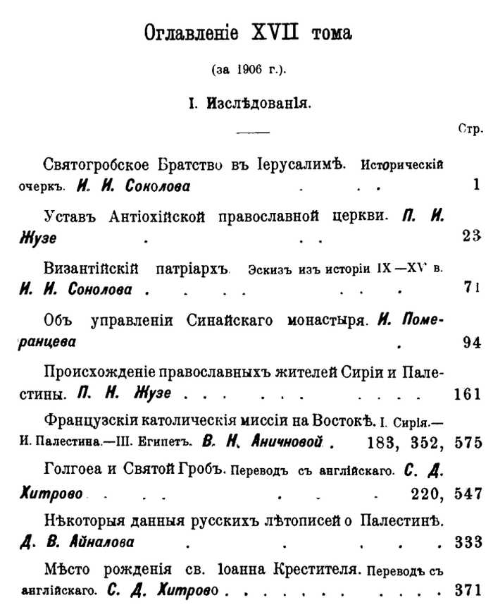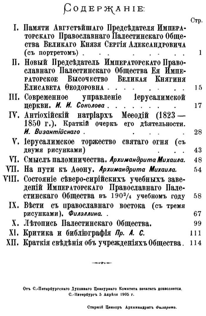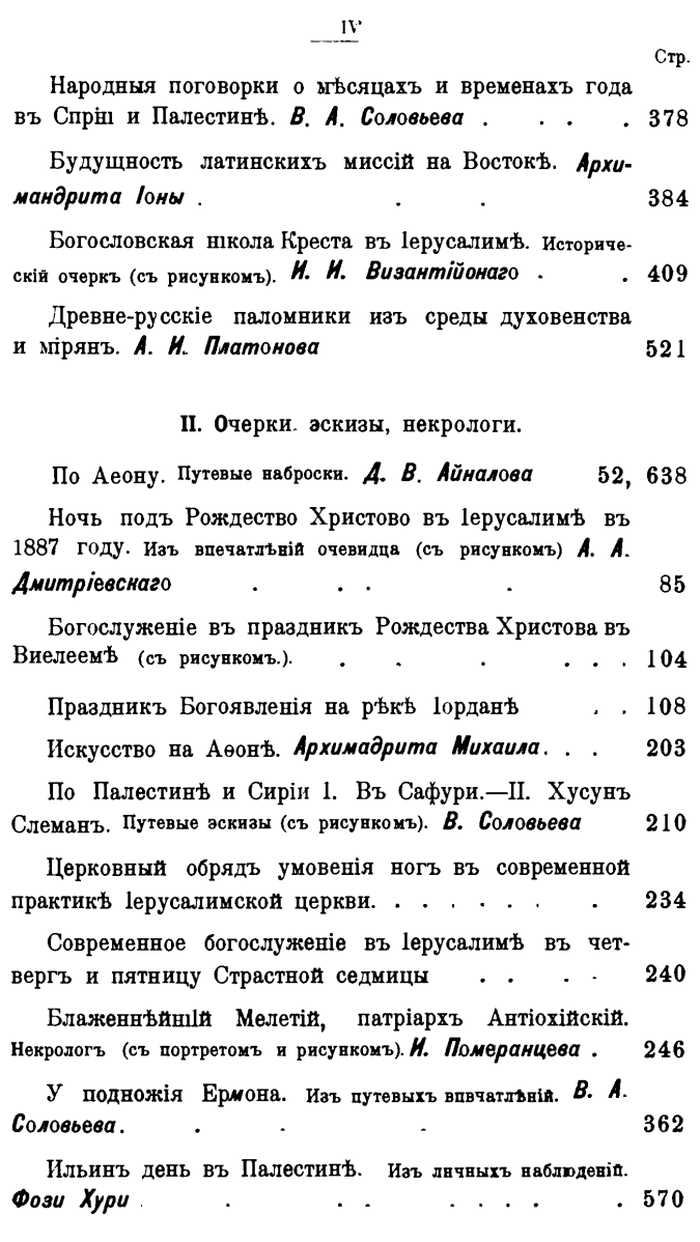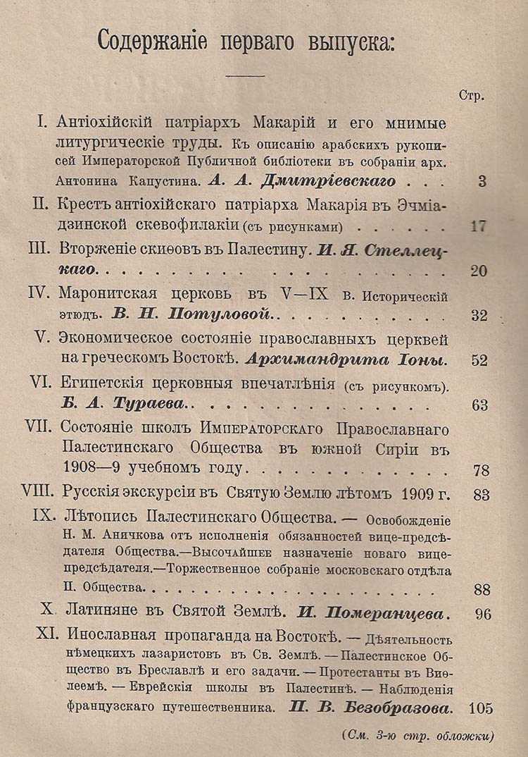 Содержание некоторых выпусков "Сообщений Императорского Православного Палестинского Общества"