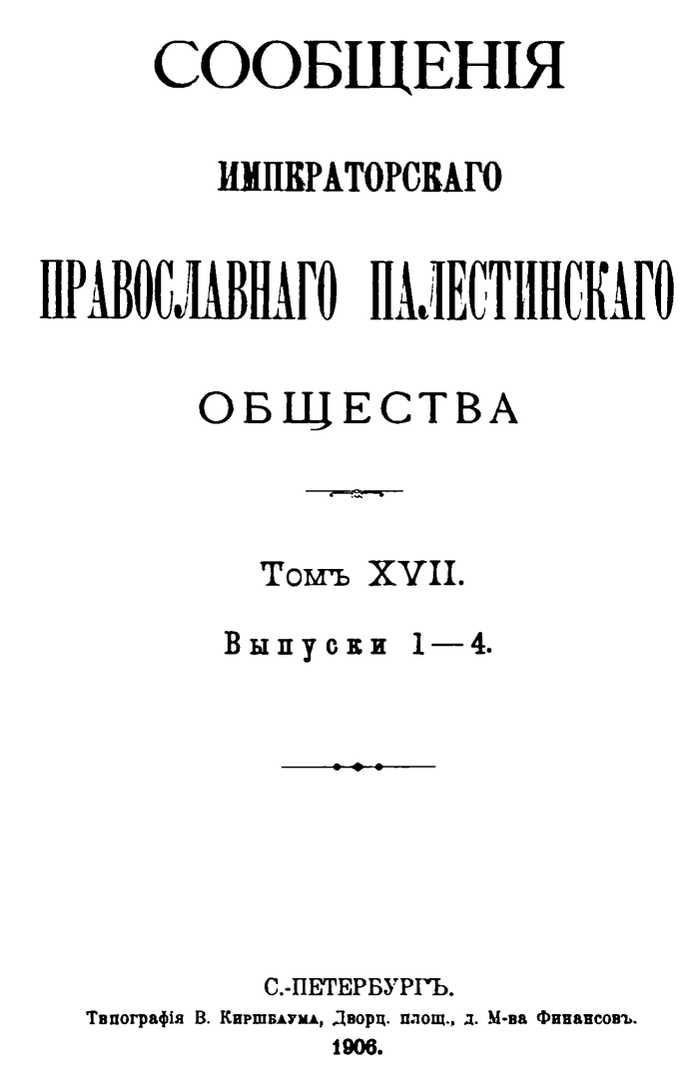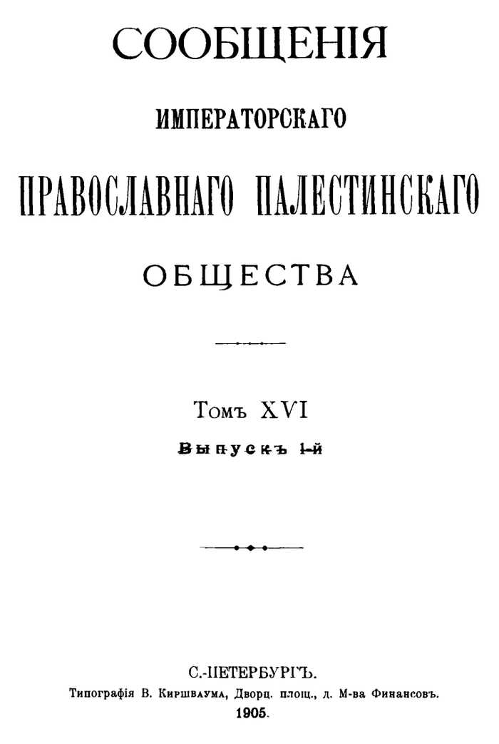 Сообщения Императорского Православного Палестинского общества. Т. 24. Вып. 2 (апрель-июнь). 1913. Спб.: типография Киршбаума
