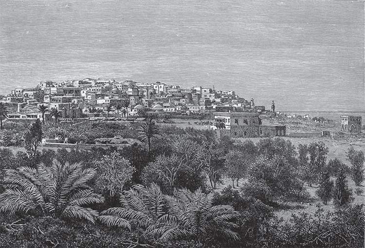 Палестинское солнце приветствовало нас ослепительными лучами. В блеске их скрывался берег, которого усиленно, но напрасно искал взор. Расстилавшаяся между солнцем и морем пелена паров позволяла различать только самую легкую черту, чуть-чуть отделявшуюся от поверхности морской, и несколько наклоненную к ней. Это был хребет Иудейских гор. Взявши высоту солнца, мы узнали, что находимся на широте Яффы. Поворотив потому прямо на восток, мы еще с полчаса времени не различали ничего, кроме очертаний берега, почти исчезавшего в лучах солнца. Наконец черною точкою стала отделяться перед нами одна возвышенность, которая вскоре, с помощью трубы, оказалась массою зданий. Это была апостольская Иоппия, полная воспоминаний о первоверховном Петре. Далеко от нее фрегат наш бросил якорь, боясь мелководья и волнения. Простым глазом едва можно было различать частности города. Я стал смотреть в трубу; думалось, что одна из многочисленных террас иоппийских, должна быть та самая, с которой апостол научился отраднейшему для всего человечества уроку о вселенском составе Христовой Церкви. Поразительным кажется этот божественный урок от местности, на которой он преподан. Иоппия была и есть дверь Иудеи в Европу. Здесь, в самом деле, как бы всего приличнее и уместнее было начаться распространению царства Божия за тесные пределы строго замкнутого в себе иудейства. Отсюда была прямая дорога идей в процветавшую тогда философиею Александрию и на все острова языков до славных мудростию эллинов и до миродержавных римлян — этих четвероногих гадов в отношении к Богопознанию и Богопочтению, не смотря на всю их гражданскую и военную славу в тогдашнем мире. Кто изменил славу нетленного Бога в подобие птиц и четвероногих и гад, тот, как образ и подобие своего божества, конечно должен был походить на таинственные образы, явившиеся апостолу. Местность дивного видения была однако же не там, где искал ее глаз. Нам сказали после, что она отстоит от города на полчаса пути. Я знал заранее, что не придется видеть ее. В распоряжении нашем не было ни одной лишней минуты; и потому оставалось довольствоваться одним усиленным представлением знаменательного явления, обнимавшего собою и нас, дальних пришельцев. Также нельзя было надеяться увидеть и другое замечательное место Яффы — дом, где совершилось чудо воскресения Тавифы.