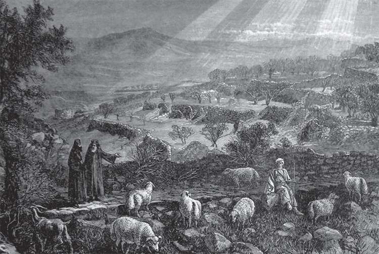 Путь мой лежал к востоку по склону горы, на которой стоит Вифлеем. Через четверть часа мы достигли пещеры, в которой, по преданию, останавливалась и кормила грудью божественного Младенца Богоматерь. Матери вифлеемские и окрестных мест берут себе землю из этой пещеры на благословение. Латины устроили в ней убогий престол, на котором и отправляют иногда богослужение, вероятно, по заказам матерей своего вероисповедания, коих в Вифлееме немало. Отсюда дорога идет несколько южнее. Еще издали мы увидели четвероугольную ограду среди поля, оживленного по местам масличными деревьями; через другую четверть часа мы были уже у нее. Это место явления ангелов пастырям в единственную ночь. Ограда сложена грубо и, видимо, в недавнее время, но в основании ее лежат большие тесаные камни; это заставляет думать, что она составляла некогда крепкое строение, которое с уверенностью можно относить ко времени построения над Вертепом великой церкви. Пространство площади, объемлемой ею, впрочем, не велико; наибольшее протяжение ее от запада к востоку. Близ северной стены, внутри ее, кучи камней свидетельствуют о бывшем там здании: тут была церковь. Место алтаря обозначается ясно. Стоя в черте его, я, несмотря на ослепительный блеск солнца, старался представить себе глубокую, холодную ночь. Думалось видеть тут неподалеку сжавшееся в кучу и спавшее стадо овец, а на месте, где я стоял, стерегших оное пастырей. Спутник, вожатай мой, понял мою мысленную работу и сказал мне: «Полноте! Мы еще не там, где было явление». Он указал на малое и глубокое отверстие в земле, почти возле самого меня, и сказал: «Там было то, что вы воображаете». – «Как и в земле?» – «Да! т. е. в пещере». Мы сделали несколько шагов к западу и увидели широкий спуск под землю. Сошедши вниз, очутились в полумраке пещеры, освещаемой несколько со входа и сквозь упомянутое отверстие в своде. Впереди нас стоял бедный иконостас. Осмотревшись, я увидел и другие принадлежности церкви. «Здесь вы видите пещеру евангельских времен, во всей ее первобытной неприкосновенности», – сказал мне спутник. Пещера, видимо, не носит на себе никаких следов обделки; было поразительно смотреть на это подземелье и думать, что таким оно было и в святую ночь ангельского благовестия. Но прежде я никогда не воображал, чтобы ангельское славословие раздавалось под землею. «Кто же сказал вам, что здесь, в подземельи было явлете?» – спросил я спутника нетерпеливо. «А кто же сказал, что не здесь, не в подземелье?», – возразил он. Никто не сказал ни того, ни другого. Я это знал хорошо. Заметив мое недоумение, спутник прибавил: «Приезжайте сюда зимою, и тогда увидите, оставляют ли здесь пастухи стада свои на ночь под открытым небом. Да и там, где вы живете, я думаю, то же самое делают». Я вспомнил, что это действительно так бывает. Но ведь речь не о стаде, а о пастухах, стерегших стадо. Была ли им нужда проводить ночь вместе со стадом в духоте и тесноте, или они, загнав стадо в пещеру, стерегли его поверх земли? Последнее казалось мне вероятнейшим. Во время этих размышлений в подземелье явился престарелый священник в рясе и чалме. Немедленно он надел на себя эпитрахиль, отдернул завесу царских врат и начал петь и читать литию. В первый раз я видел арабского священника и арабское богослужение. Все меня при этом занимало: и суетливые движения старца, пр