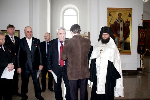 На церемонию прибыла представительная делегация Императорского Православного Палестинского Общества: заместитель Председателя ИППО Юрий Алексеевич Грачёв, управляющий делами ИППО Михаил Иванович Калинин, председатель правления Управления делами ИППО Игорь Васильевич Петраков, управляющий Центром ИППО в Москве Самвел Казаросович Казарян, председатель Московского областного отделения Юрий Петрович Смирнов, его заместитель в отделении Александр Николаевич Панин, возглавляющий правление благотворительного фонда «Возрождение культурного наследия», и другие члены Московского областного отделения ИППО.