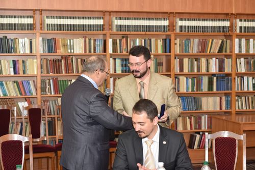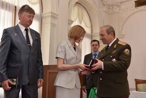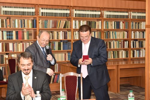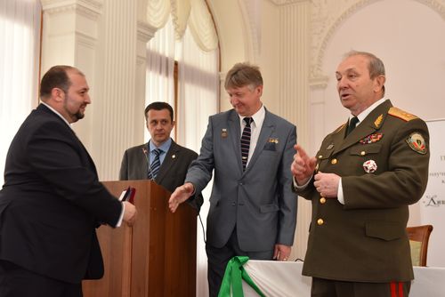 По поручению Председателя ИППО С.В. Степашина, М.И. Калинин вручил почетные памятные знаки ИППО: В.В. Полищуку - "Медаль имени В.Н. Хитрово", а Р.А. Близнякову - "Медаль имени А.А. Дмитриевского". Почетными грамотами были награждены ректор КФУ имени В.И. Вернадского Донич С. Г., проректор университета Юрченко С. В., доцент кафедры Новой и новейшей истории Малышев Д.А.