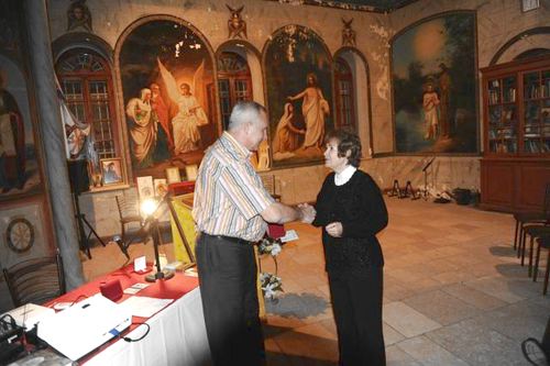 Получение наград Общества, которые Юрий Алексеевич вручил присутствующим членам Иерусалимского отделения, выглядело очень символично в стенах народной трапезной Сергиевского подворья, построенного ИППО на заре своего становления на Святой Земле в далеком 1889 году и освященного знаменитым начальником Русской Духовной Миссии, почетным членом ИППО архимандритом Антонином (Капустиным), собирателем Русской Палестины. Более торжественной обстановки, чем трапезная с колоннами, украшенными знаками ИППО, расположенная в историческом здании, где трудились и жили многие наши замечательные предшественники, трудно себе представить.