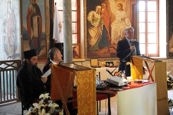 Большой вклад в российское присутствие в Израиле вносит деятельность Иерусалимского отделения ИППО, это чрезвычайно важно. Мы с гордостью наблюдаем, как развивается отделение – научно, исторически, мемориально. Я хочу особо выразить нашу благодарность настоящему подвижнику – председателю Иерусалимского отделения ИППО Павлу Викторовичу Платонову. Знаете, очень важно, кто стоит у дел, у его истоков, кто рождает идеи, и кто, по мере сил и поддержки со стороны, их реализует. Наш Российский культурный центр может в этом смысле не так много, у нас свои задачи, но всё, что мы можем – информационная поддержка, наша площадка, наши какие-то скромные материальные возможности, культурологические, мы с удовольствием предоставим в распоряжение Императорского Православного Палестинского Общества, потому что гордимся этой дружбой, гордимся этими контактами. Дорогие друзья, как знак нашей дружбы я привез в дар Иерусалимскому отделению ИППО книги, вышедшие в Москве не так давно: «Творцы Русской идеи» (автор Арсений Гулыга) и «Патриарх Тихон» (автор Михаил Вострышев), а также «Славянский мир между Римом и Константинополем».