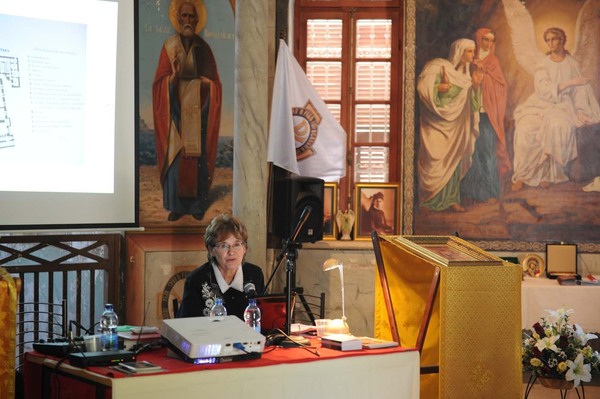 Секретарь Иерусалимского отделения ИППО Татьяна Евгеньевна Тыжненко выступила с докладом на тему: „Александровское подворье Императорского Православного Палестинского Общества – святыня Иерусалима“, в котором рассказала историю археологических раскопок, строительства и функционирования первого подворья ИППО в Иерусалиме, который объединил под одной крышей храм, Порог „Судных врат“ и археологические древности.