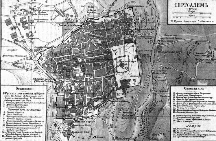 Начнем с Иерусалима и его окрестностей (рис. 1, 2). Самый известный объект в Старом Городе — Русское место близ храма Гроба Господня, ныне Александровское подворье (Лисовой и др., 2000. № 10).