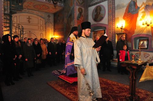 Богослужение совершил епископ Броварской Феодосий. За панихидой молились сотрудники посольства Российской Федерации в Украине во главе с советником-посланником Андреем Воробьевым. Память выдающегося российского государственного деятеля и дипломата почтили представители Россотрудничества, организаций российских соотечественников, Украинской молодежной палаты и молодежных организаций стран СНГ.